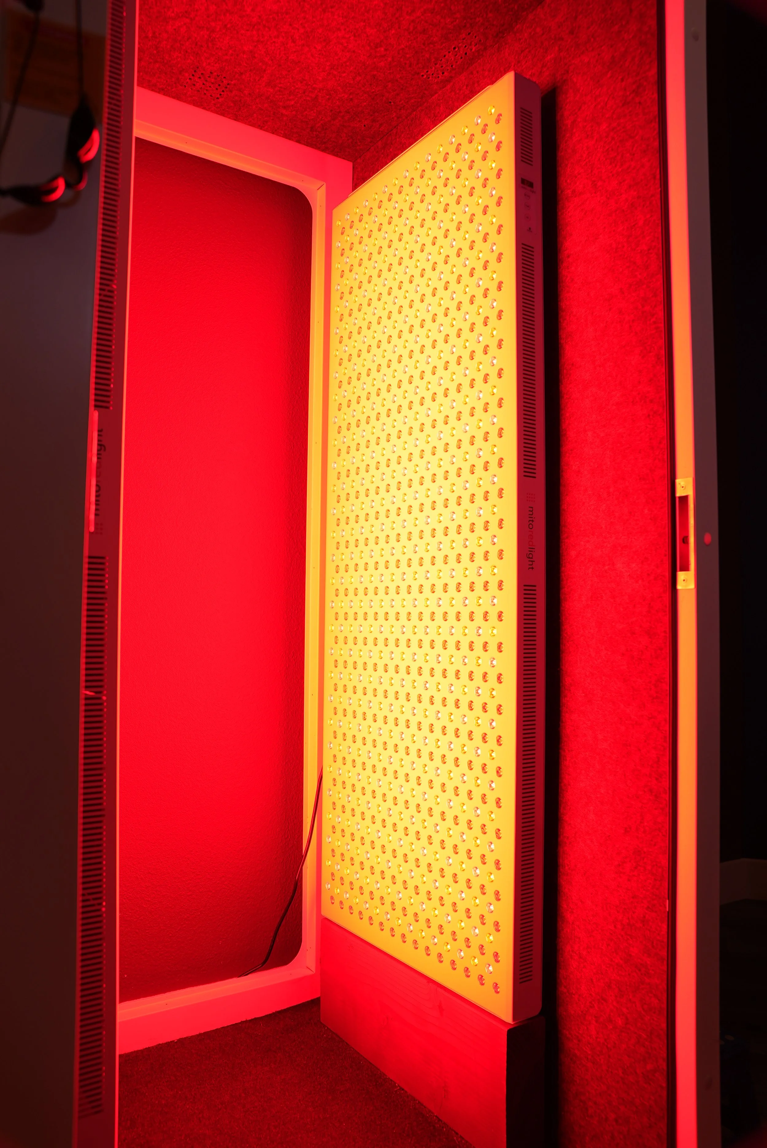 Our Mito Cabin Red Light Therapy delivers full-body exposure to red and near-infrared wavelengths that energize cells, boost collagen, and support muscle and joint recovery.
